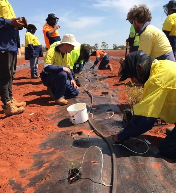 Planting activities at the first Indigenous owned and managed native seed farm, in the Mid West region of Western Australia, aiming to generate native seeds to meet the demands of ecological restoration activities on mined lands throughout the region. Image credit: Kingsley Dixon