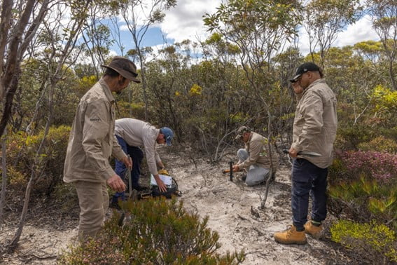Nowanup Noongar rangers establishing wildlife camera traps with Bush Heritage Australia. Image credit: Nic Duncan